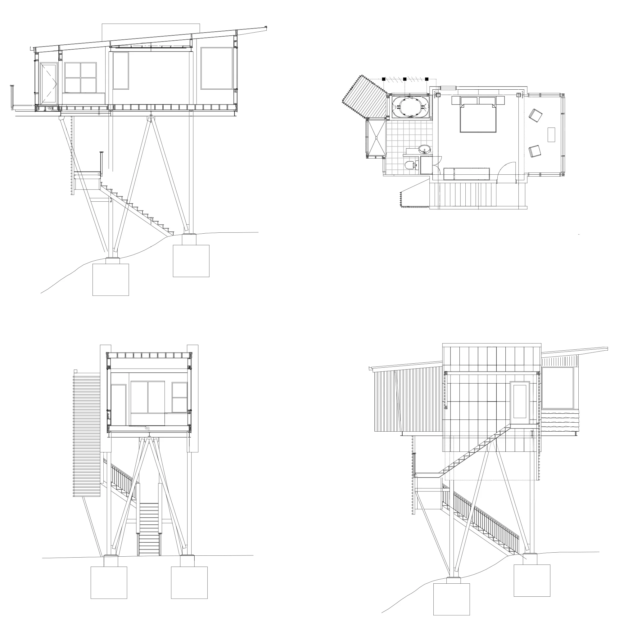 The one-bedroom Tree Houses are perfect for couples, they are warm & inviting with deep soaking tubs, fireplaces and our custom made furniture. The “Family” Tree House has the same upstairs design along with the downstairs room, designed perfectly with children in mind including a separate bathroom & twin beds.